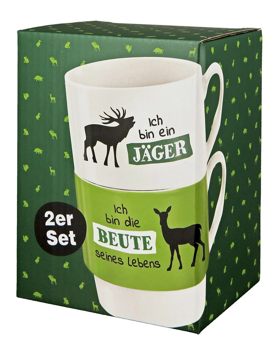 2tlg. Set Stapeltasse „Jagd“ weiß/grün