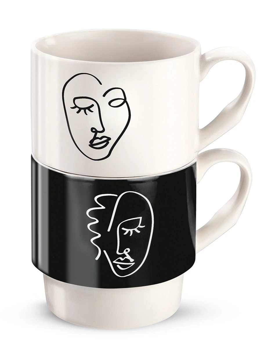 2tlg. Set Stapeltasse in schwarz / weiß